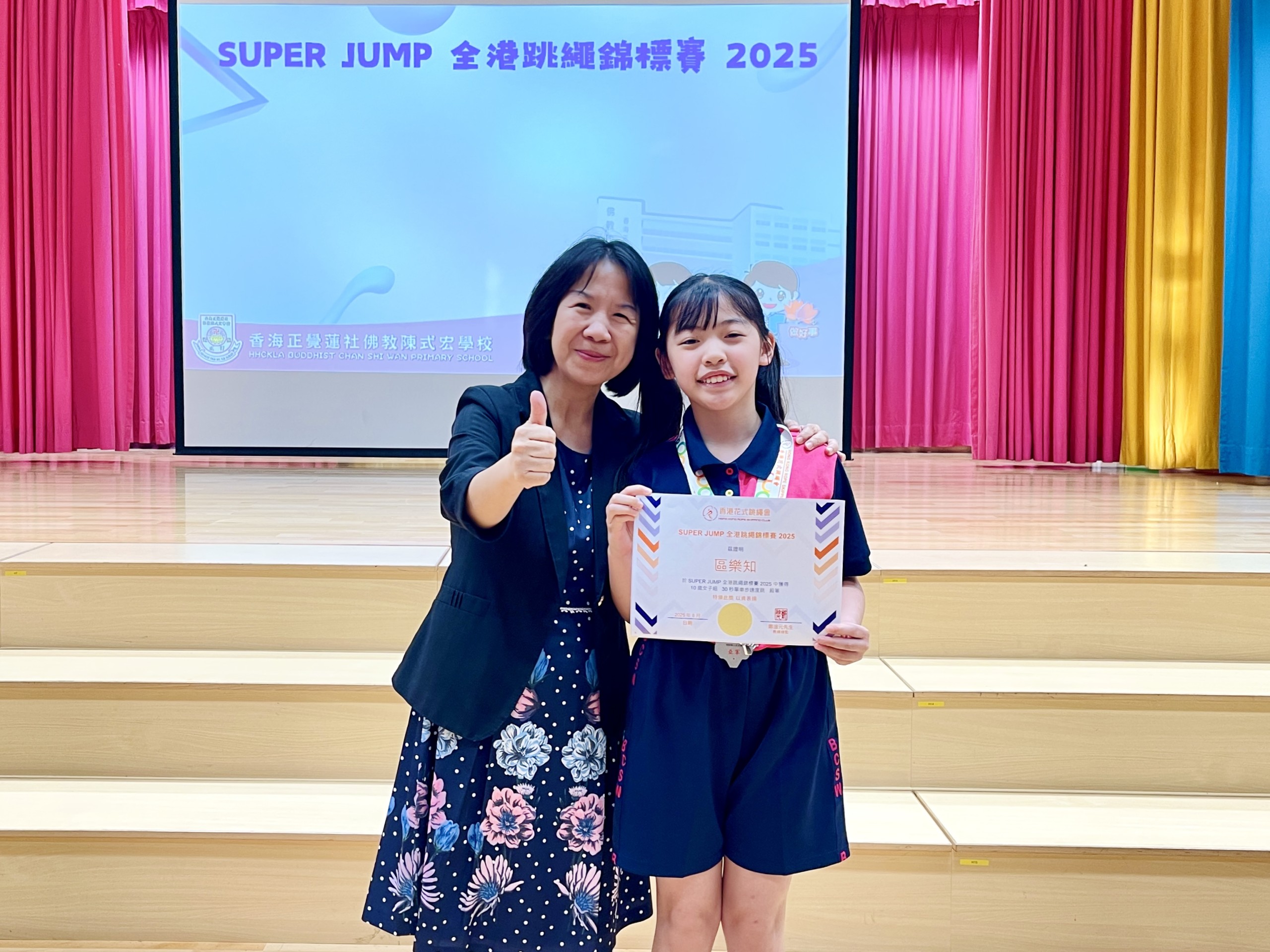 5B班區樂知同學積極參與校外比賽,在「Super Jump 全港跳繩錦標賽 2025」中的速度及花式項目中勇奪佳績,實踐「學業體藝,並駕齊驅」的信念!