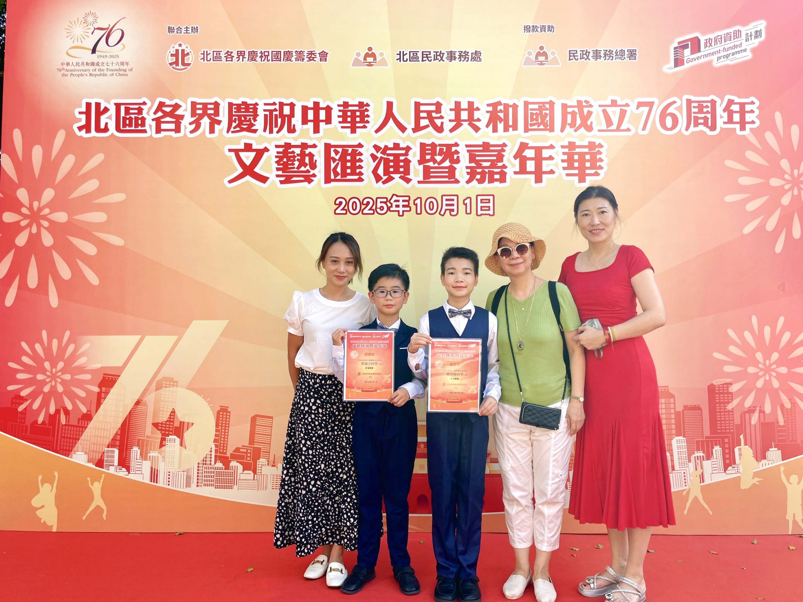 式宏家5B班胡堅駿和6B班蔡鎬宇同學參與「北區各界慶祝中華人民共和國成立76周年匯演暨嘉年華」,唱出「我的驕傲」歌曲,在舞台綻放信心,向社區分享正能量。