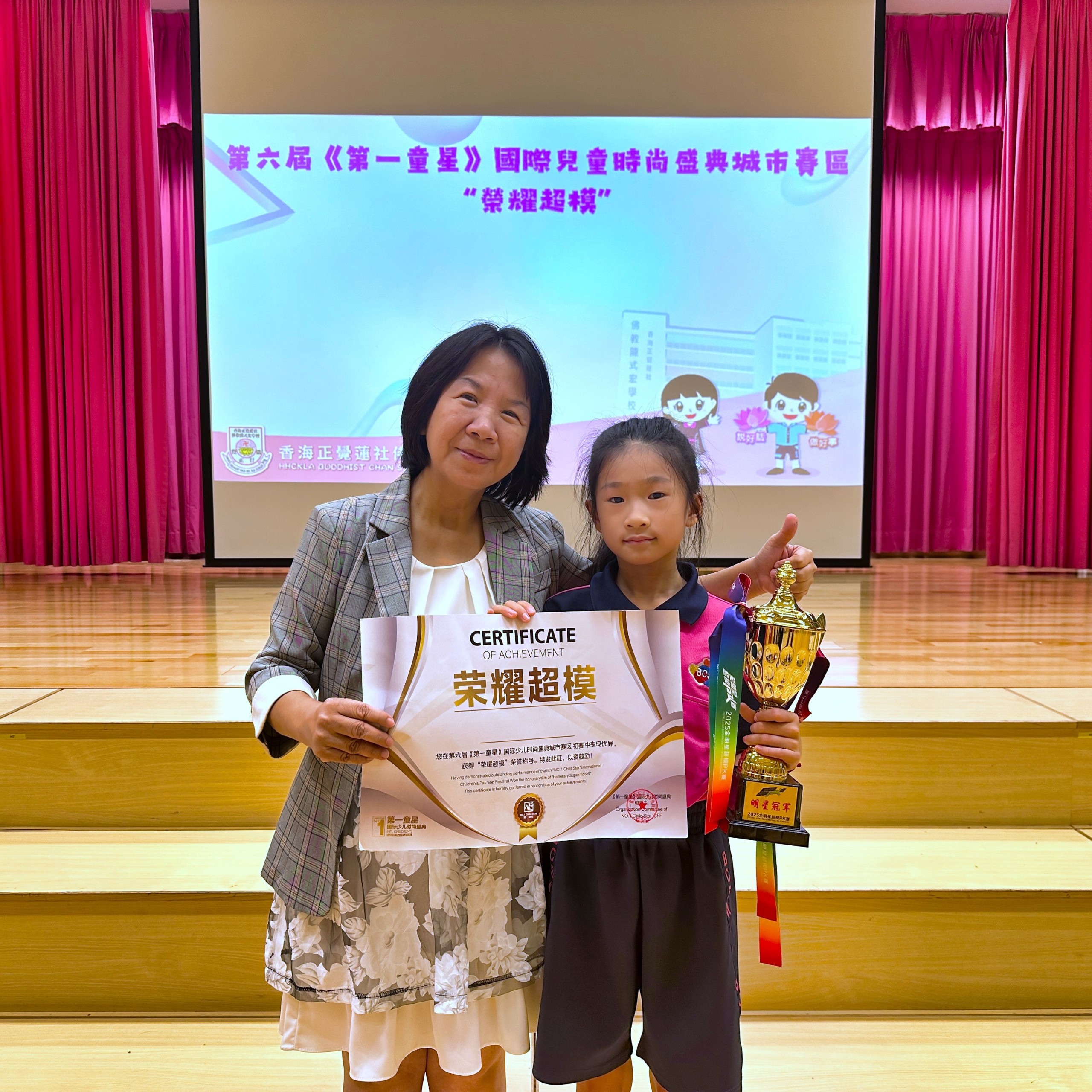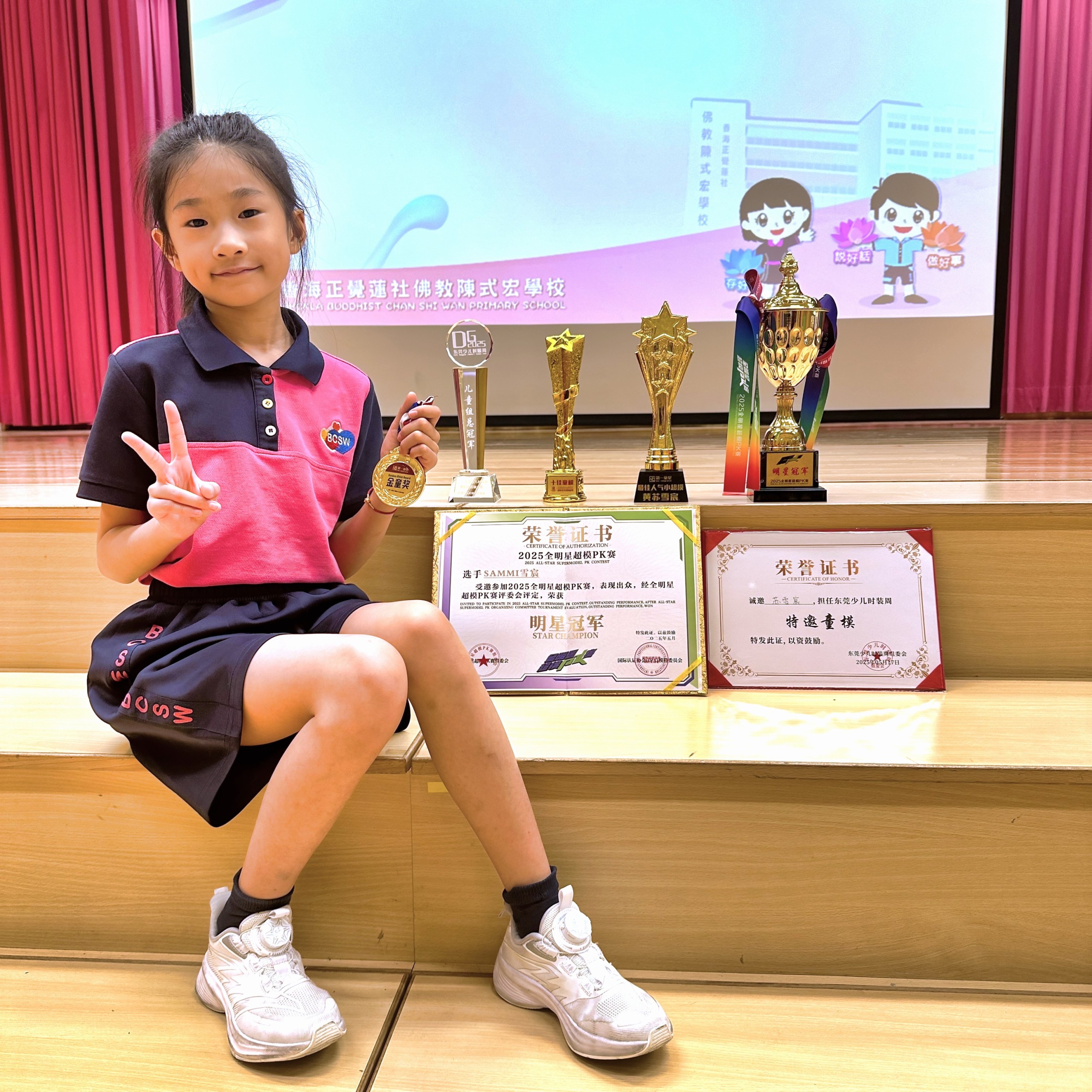 祝賀2D班黃蘇雪宸同學在 第六屆《第一童星》國際兒童時尚盛典城市賽區 中,以傑出的表現榮獲「榮耀超模」殊榮!她展現了卓越的自信和自強不息的精神!雪宸不僅在本次盛典中獲得殊榮,更在多項模特兒比賽中屢獲佳績,展現無限潛力。我們為她的成就感到驕傲,期待她未來在模特兒舞台上繼續綻放光芒!