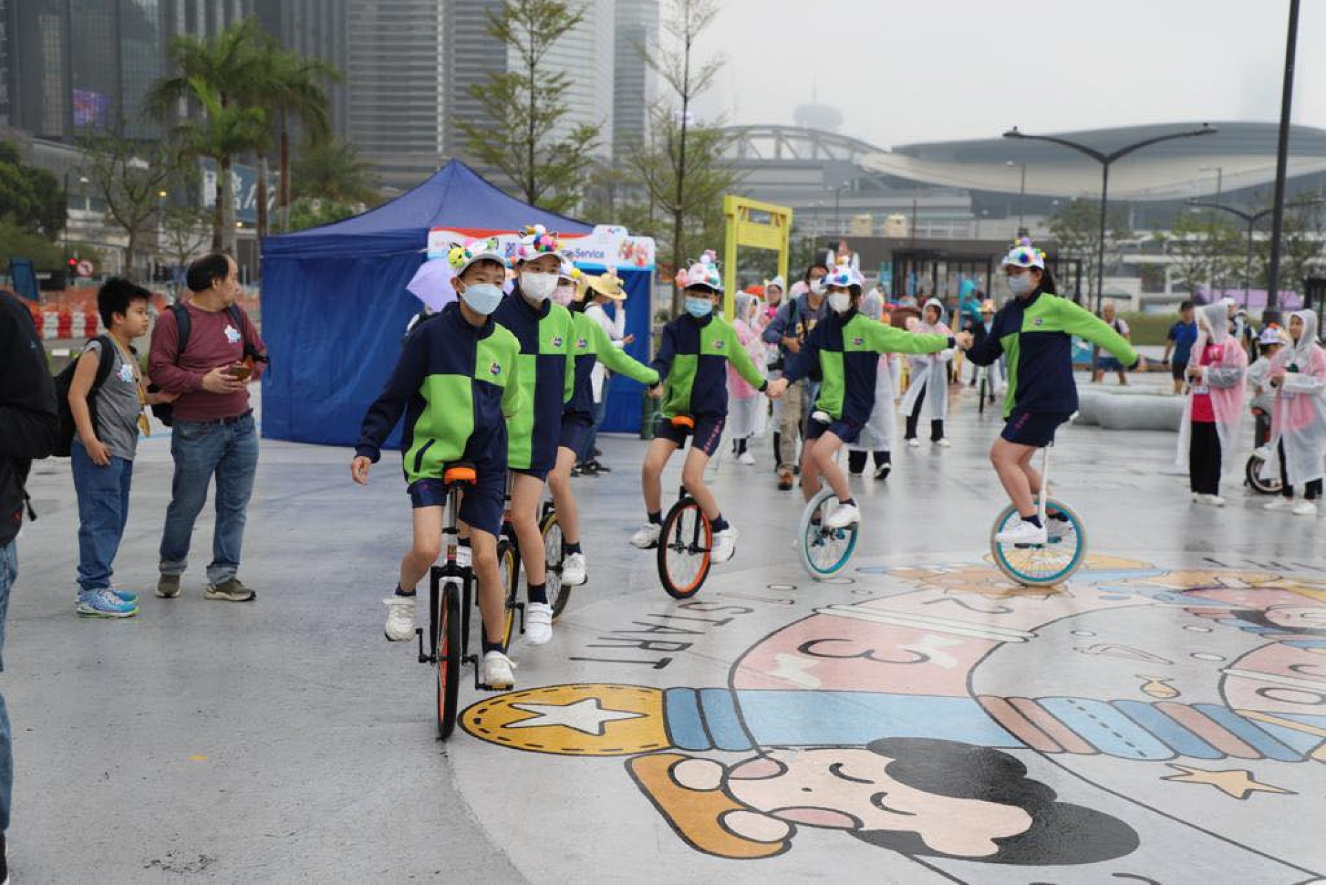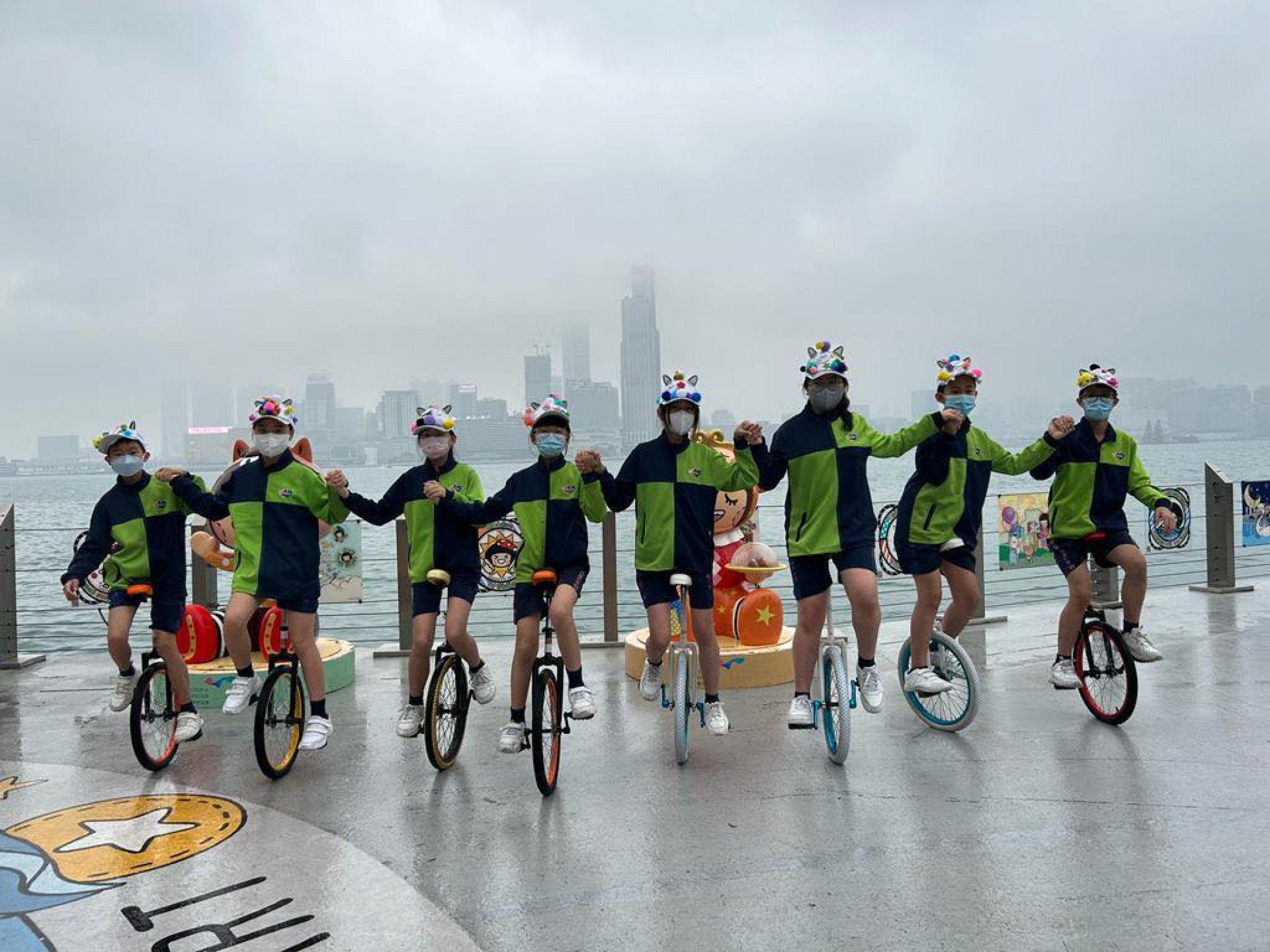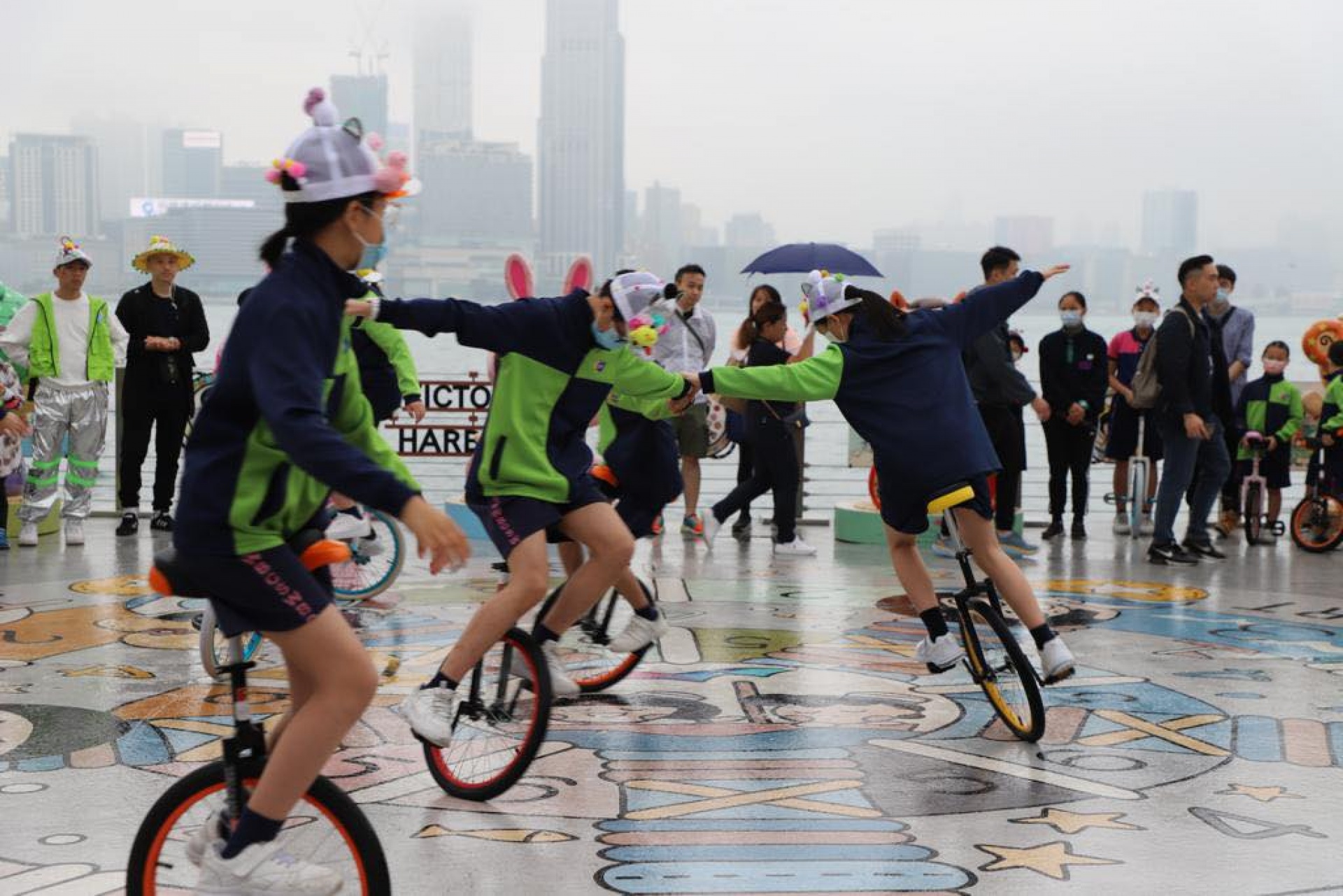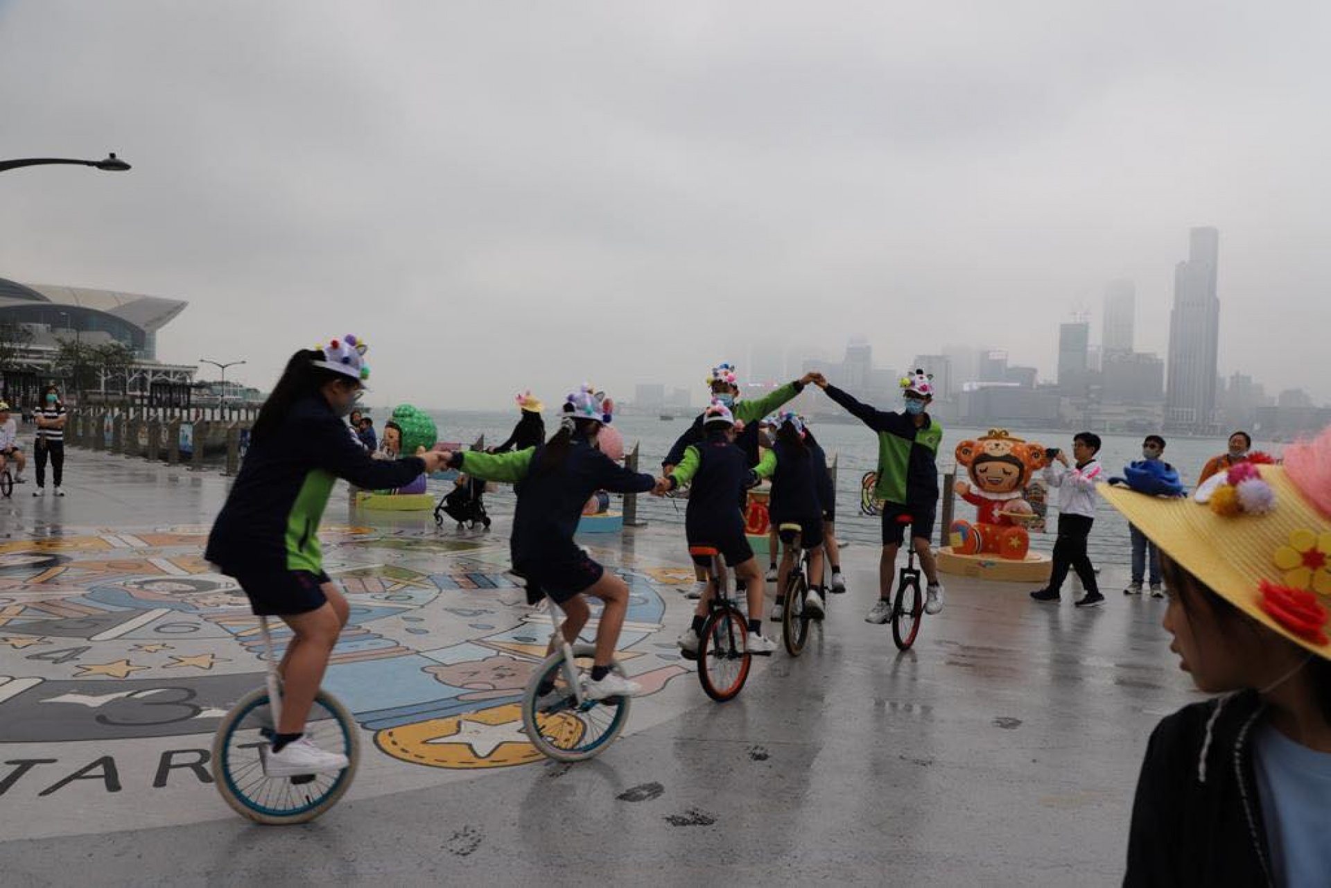 香海正覺蓮社佛教陳式宏學校單輪車隊伍不怕風雨,熱情投入維港復活節帽子巡遊2023