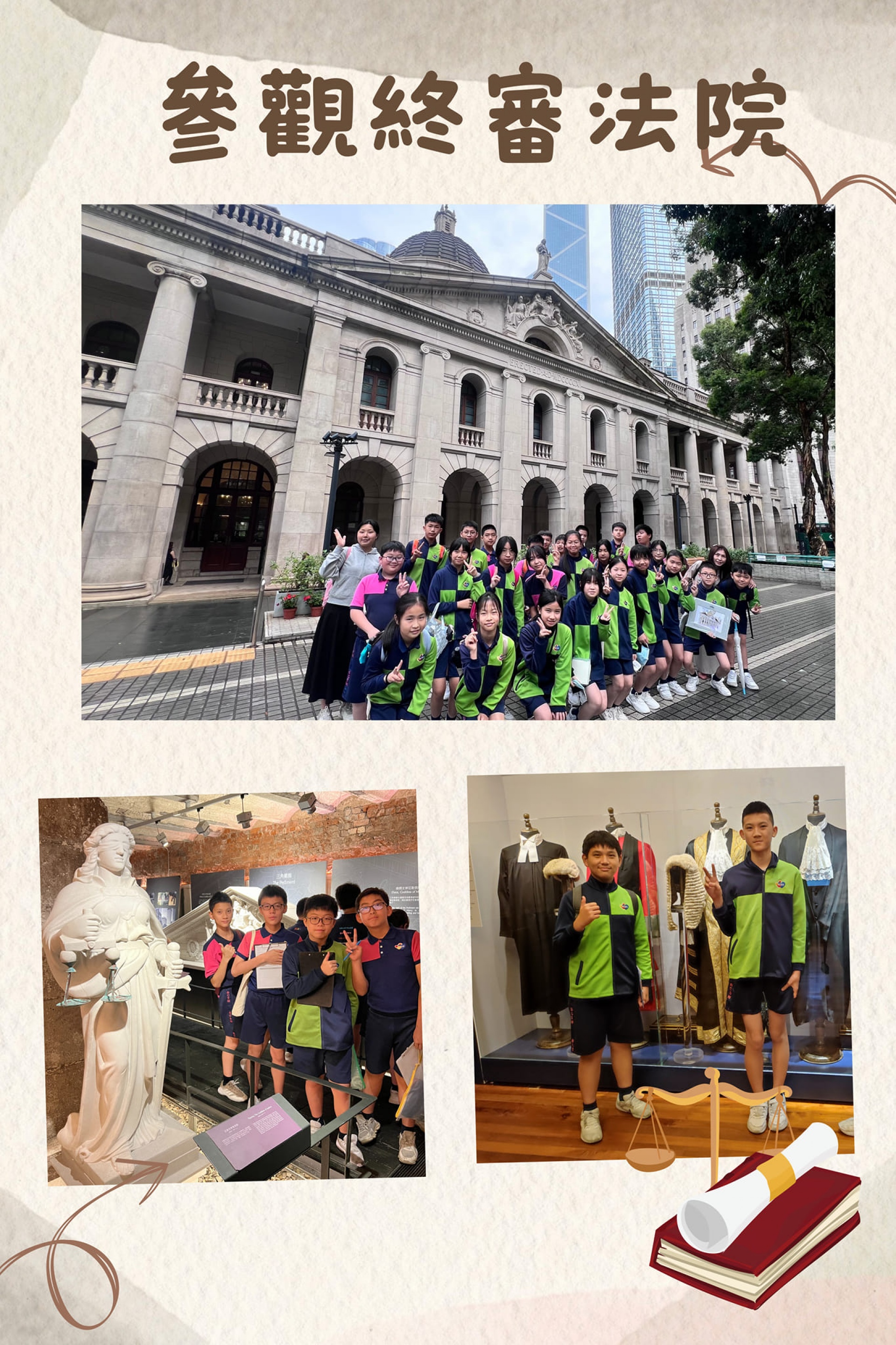式宏家安排六年級同學參觀終審法院,透過實物、錄影片段及圖片認識泰美斯女神蒙眼、手持天平及寶劍的深意;法官律師傳統的服飾,誓言的莊嚴神聖和無懼、無偏、無私、無欺的法律精神。同學更可坐在答辯雙方大律師的坐席一嘗向法官閣下介紹自己的滋味。這次的學習活動不單提升同學對香港司法機構歷史和運作的認識,也是品德情意的學習。