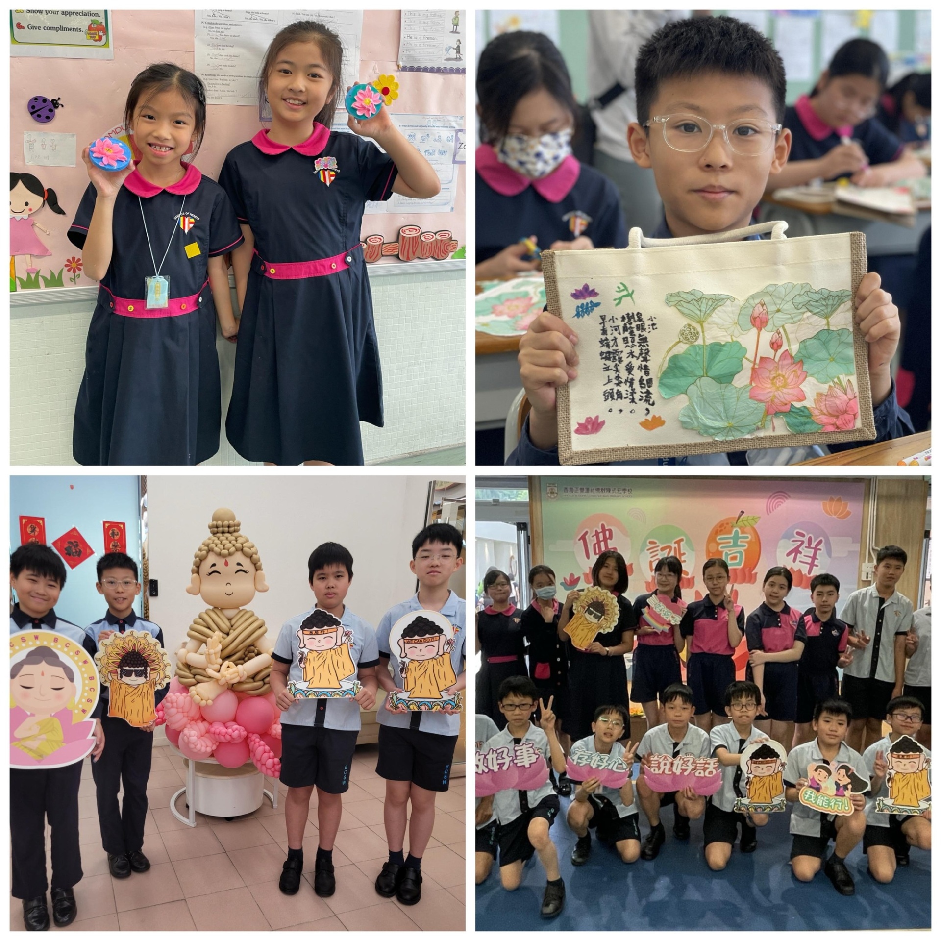 式宏家為慶祝意義非凡的佛誕,特別舉行了各項別開生面的活動;同學除了誠心浴佛及發願供水,更親製荷花浮雕畫