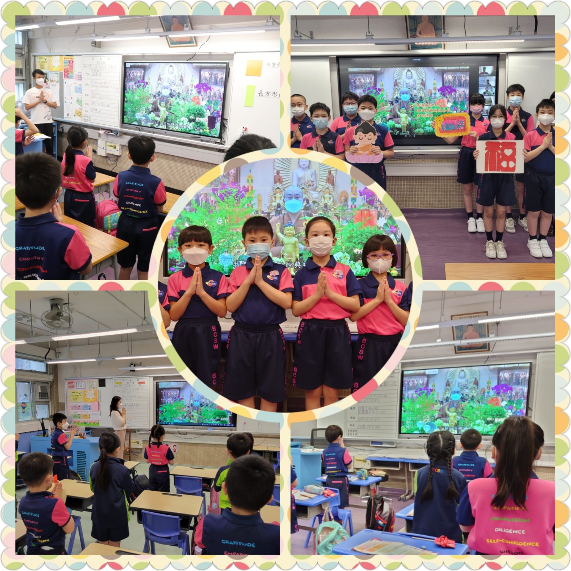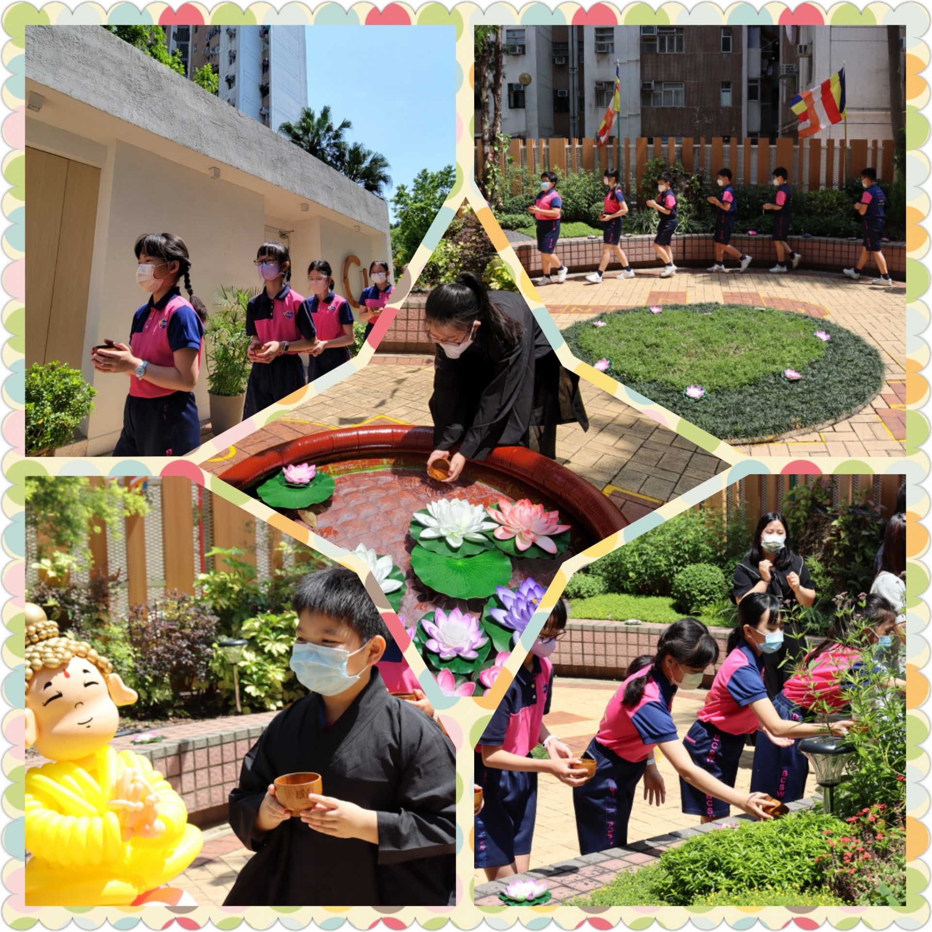 我們透過多元化活動與同學分享佛法,同沐佛恩。當天活動豐富,包括「灌沐太子•洗滌身心」?、「唱頌佛曲•傳揚樂韻」、《佛陀的一生》影片欣賞、「慈悲自在•歡喜畫佛」發願、「佛心花海•菩提妙華」花藝創作?、「供水淨心•感恩當下」。