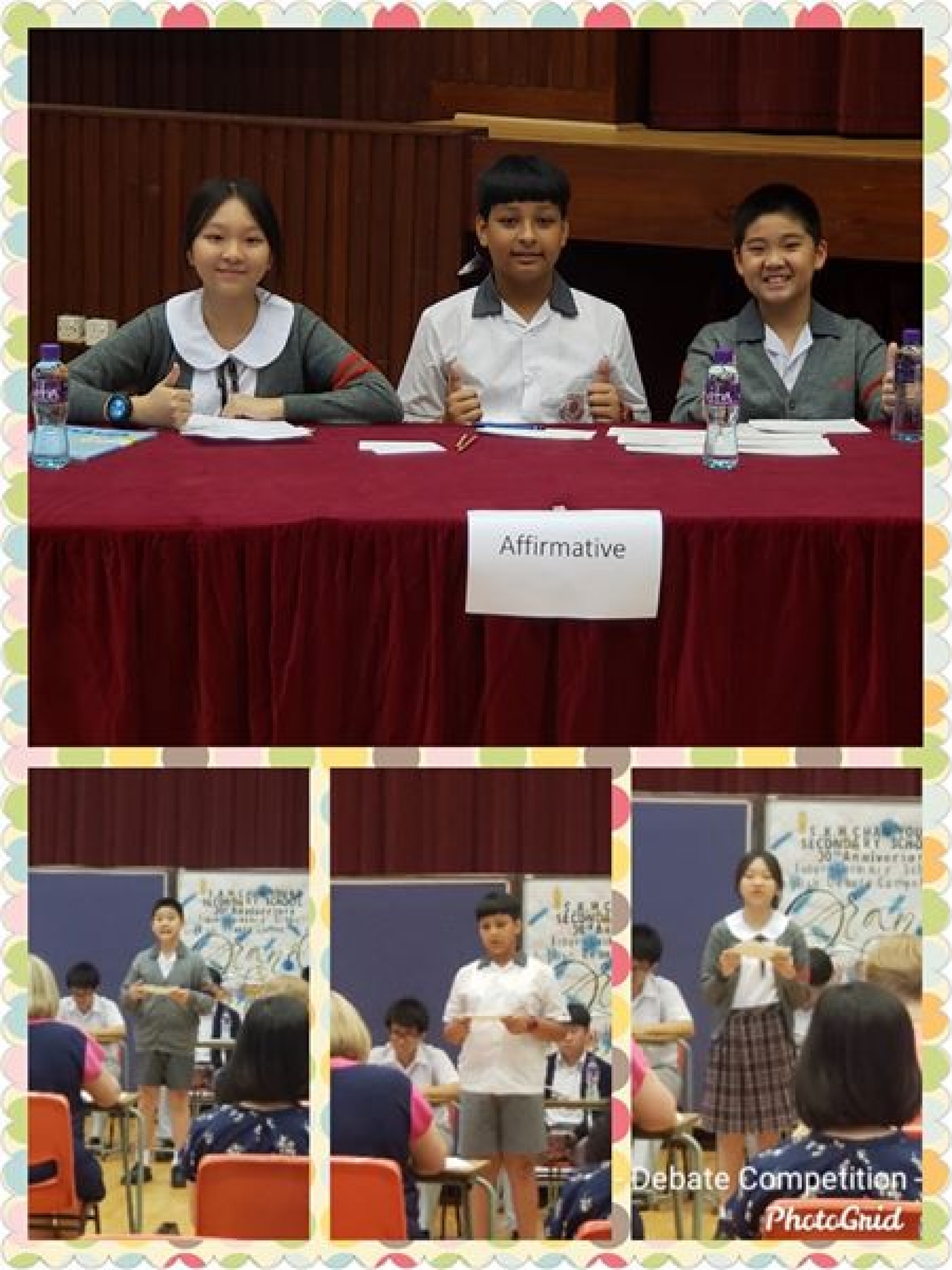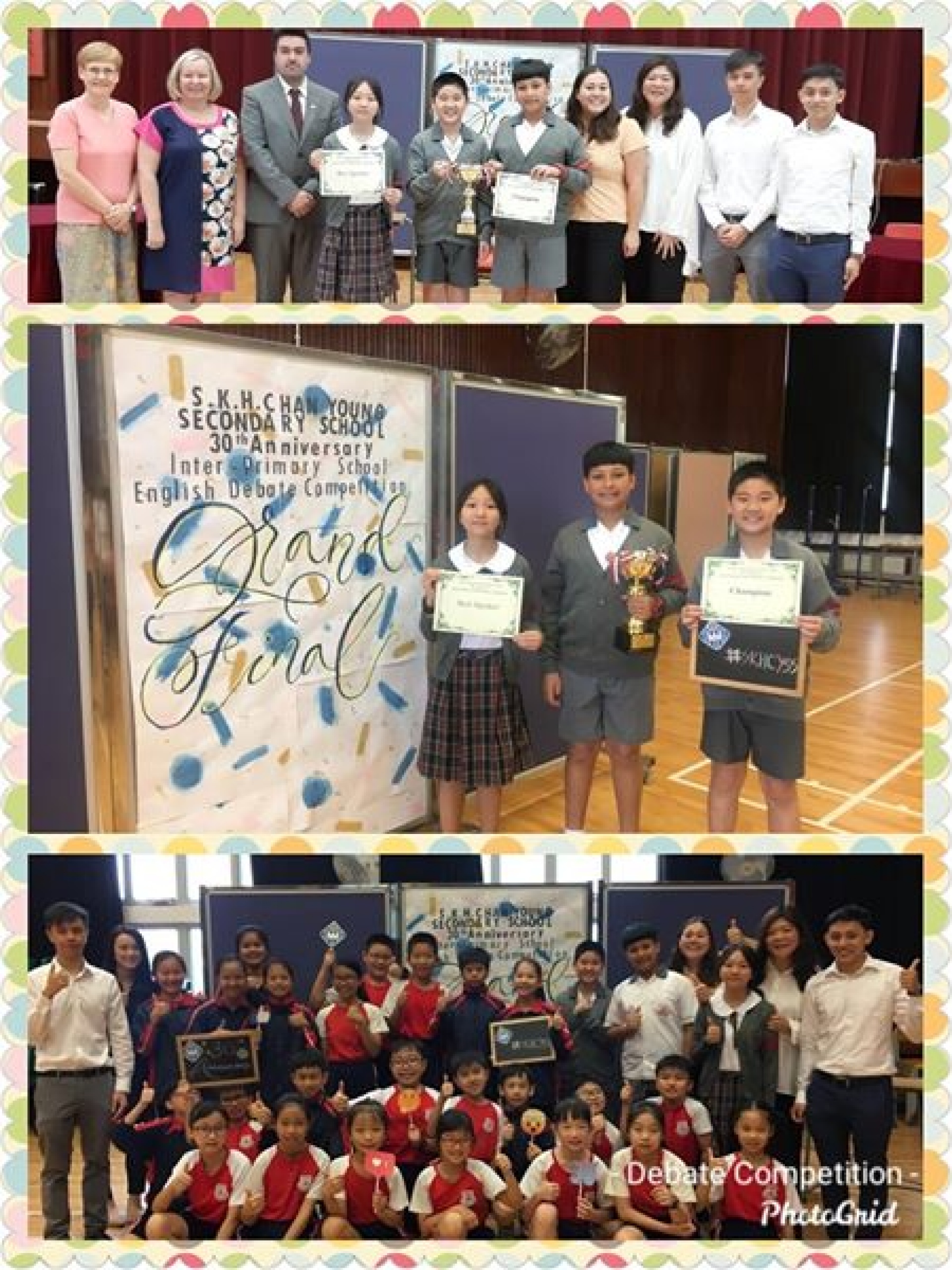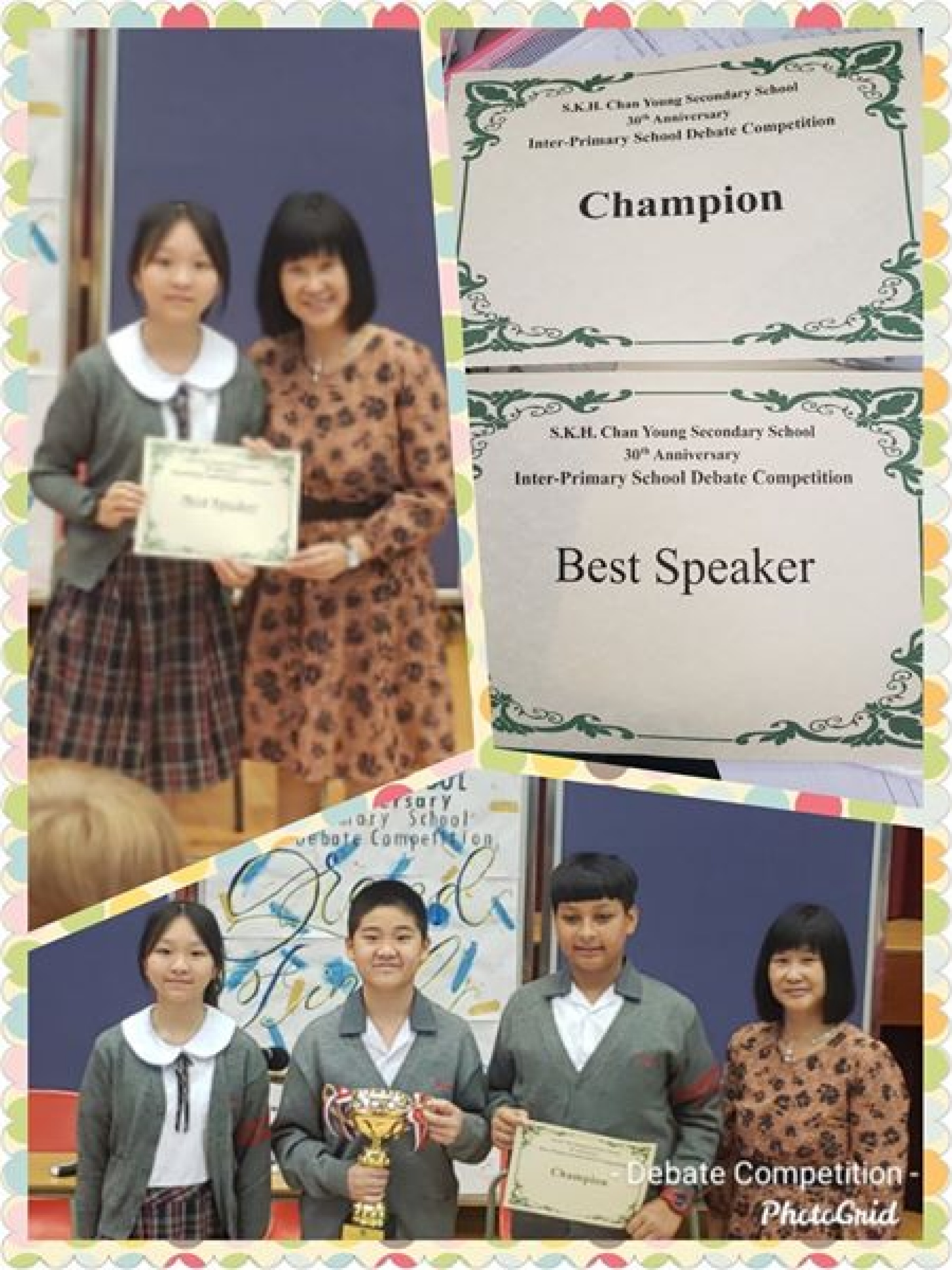 他們與同區學校的學生合演了一場緊張、刺激、精彩的辯論比賽?。最後,憑著兩星期的充足準備和演練,以及其他英語大使親臨現場的支持及打氣,他們勇奪第一屆北區小學校際辯論邀請賽冠軍?,温晴更榮獲為「全場最佳辯論員」?。他們是次積極應戰的態度,印證「人貴有志,學貴有恆 」的重要,非常值得式宏家同學們學習?