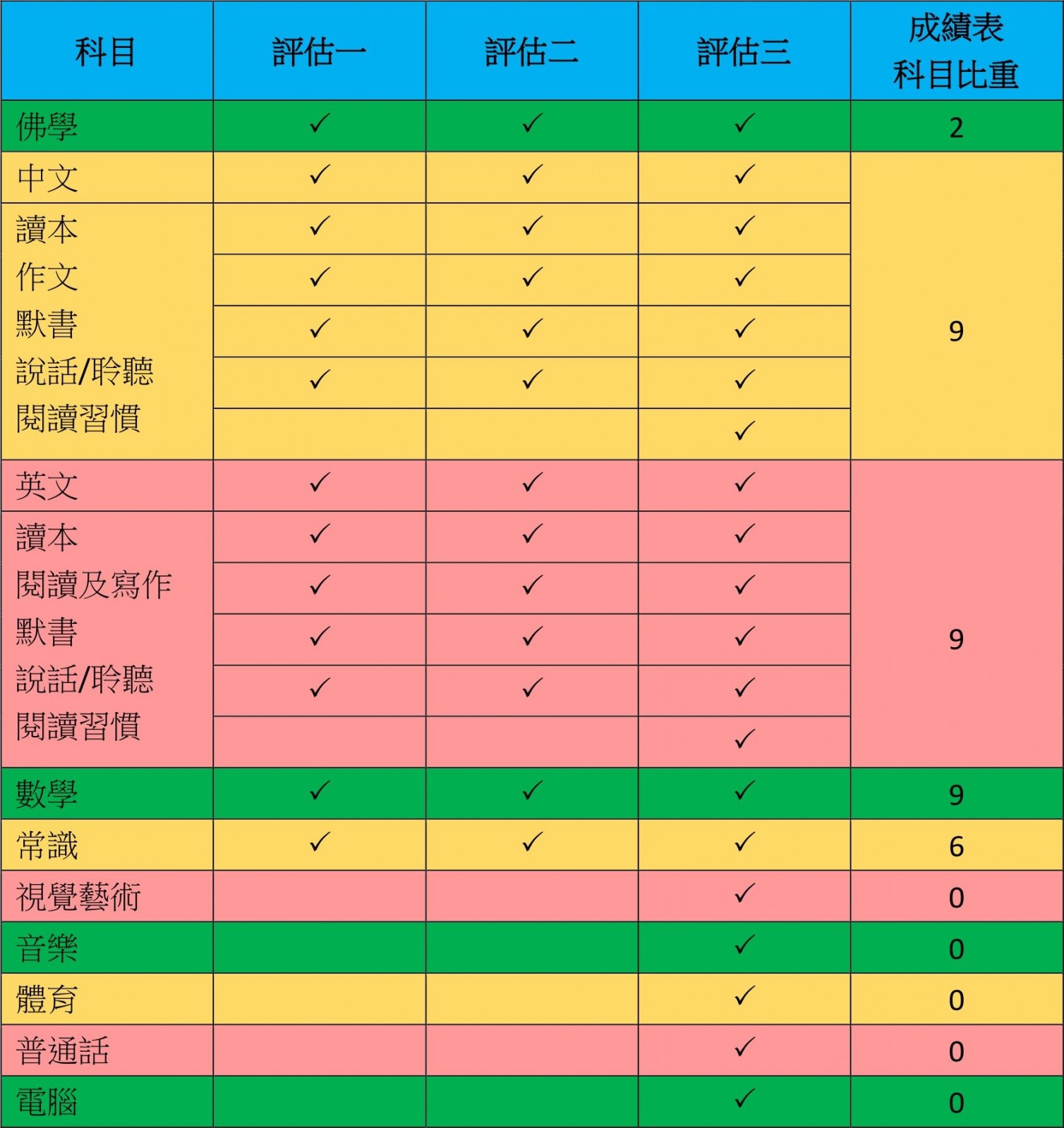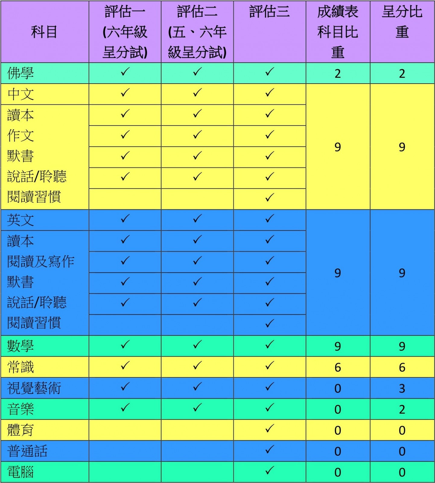 - [音樂]、[普通話]和[電腦] 同時以進展性形式和總結性形式進行評估