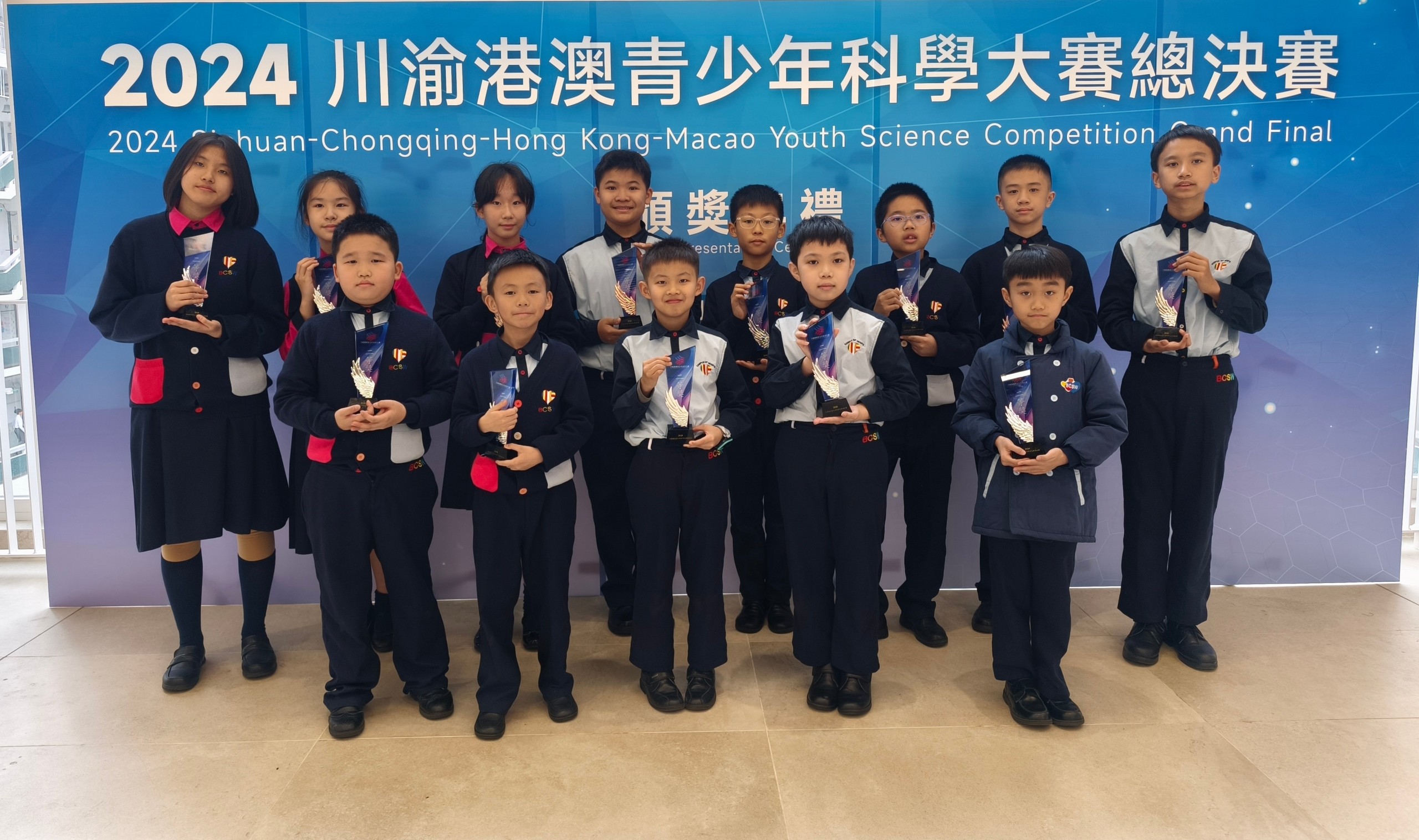 恭喜式宏家13位同學在2024川渝港澳青少年科學比賽中取得佳績,10位取得全國二等獎,3位取得全國三等獎,滿載而歸。同學的卓越表現亦為式宏家帶來優秀校長領導大獎和優秀科學指導老師大獎。 在這個四地學生參加的青少年科學比賽中,共有超過20000位學生參加,經過地區預賽和地區決賽,13位式宏家同學脱穎而出,成為香港區代表。同學表現了我能行的精神,在大型比賽中證明了自己的綜合科學潛能和實力,希望他們能繼續努力,成為科學界的未來新力軍,貢獻國家和社會。 |
